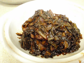 (3) My grandmother was a true blue Hakka and had many dishes that she kept to her heart and never did pass down to anyone, even her daughters. Though my mother managed to learn the "abacus seeds" by secretly observing her, there were still certain dishes I wished she could have taught someone. (If anyone can teach me....I will be most willing). One was preserved vegetables (客家梅菜). The preserved vegetable my mother taught and cooked is never the same as my grandmother's as it seemed more teochew. Those sold outside at Hakka restaurants also never came close. Hers was alot drier, chewier, sweeter and yet more flavourful. You needed only a little to go with a whole bowl of rice.